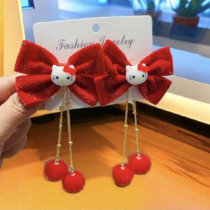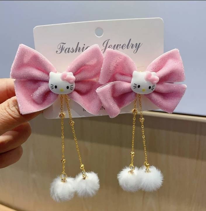 💗กิ๊บติดผมคิตตี้ แพ็คคู่ ผ้ากำมะหยี่ ประดับตุ้งติ้งน่ารัก สวยหรู ดูแพง แฟชั่นประดับผม ขนาดกิ๊บ 4 ซ.ม.