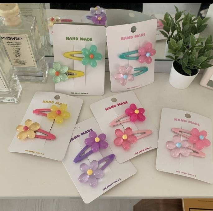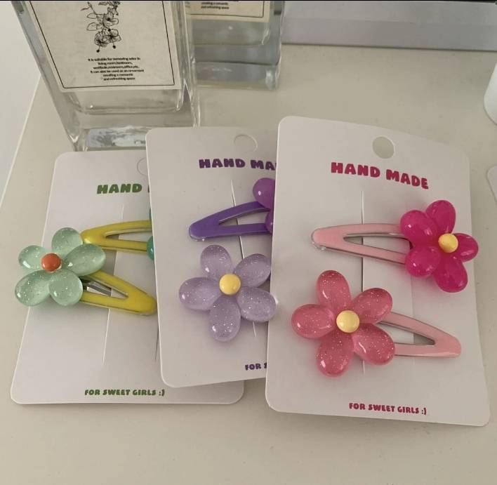 💗กิ๊บติดผมดอกไม้คริสตัล สีหวาน เซ็ต 2 ชิ้น สไตล์เกาหลี แฟชั่นประดับคุณผู้หญิง