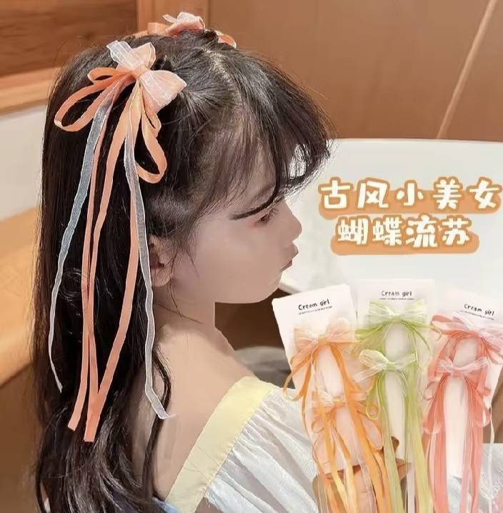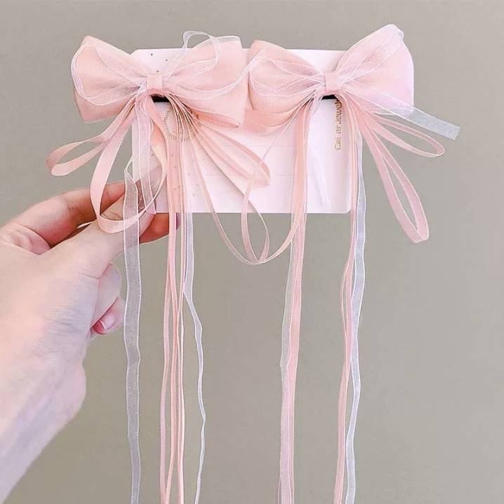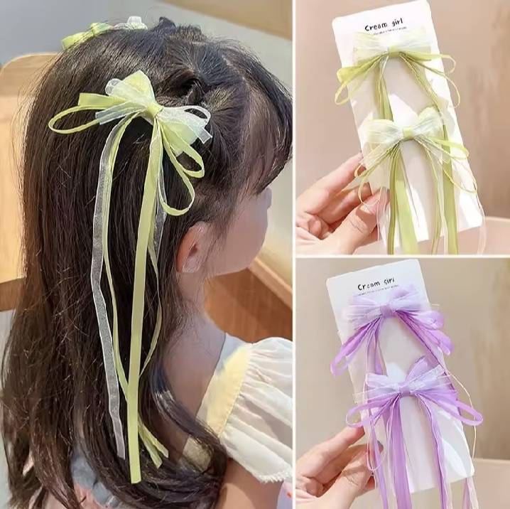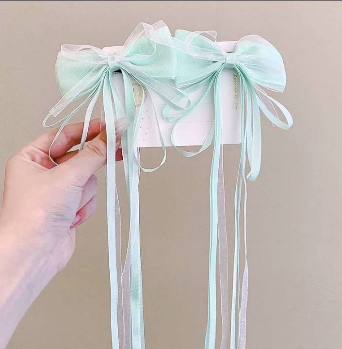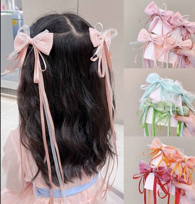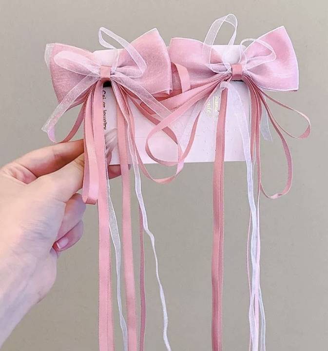 💗 กิ๊บโบว์ริบบิ้นเล็ก แพ็คคู่ สำหรับเด็กหญิง ขนาด 6 ซ.ม. ริบบิ้นยาว ประมาณ 25 ซ.ม.แฟชั่นประดับผมเด็กหญิง